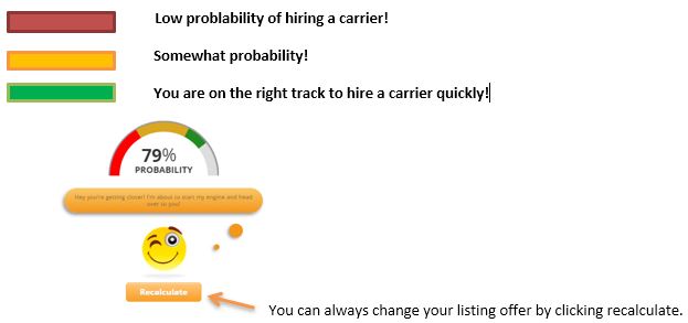 Note: Follow the probability gauges which will guide you to the best accurate listing rate and get a carrier response!